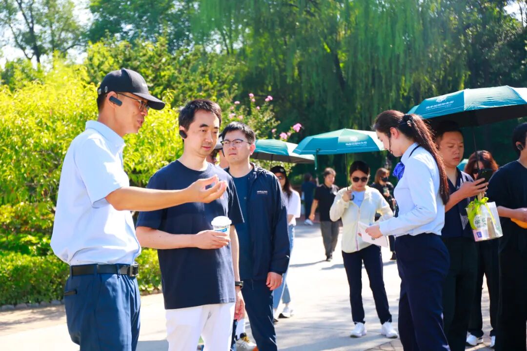 河南福寿园总经理陈振楠(左1)向刘润老师(左2)介绍河南福寿园案例