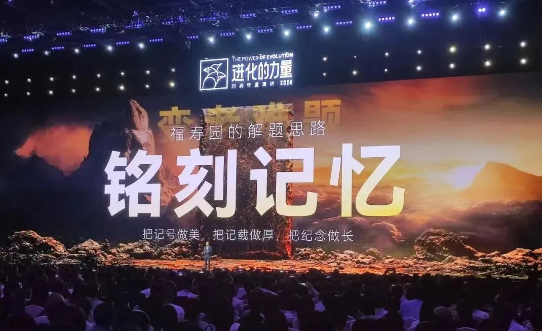 刘润在演讲中表示:“寻梦环游记里说,真正的死亡,是世间再无有关你的记忆。社会变老,怎么办?福寿园的解题思路是,铭刻记忆。把记号做美,把记载做厚,把纪念做长。让每个人人生的最后一天,都被永远铭记。”