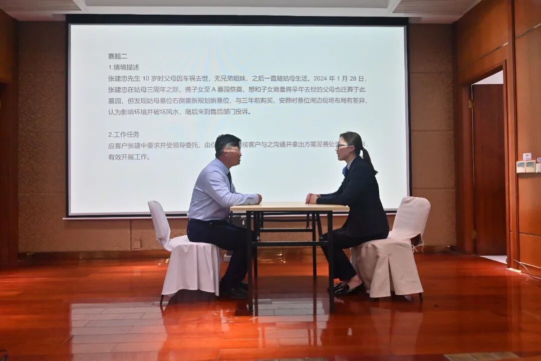 全国技术能手、常年扎根于行业一线的竞赛获奖选手、资深实务专家到场精心精讲,从管理服务理论,到COMET(职业能力测评)方案撰写,再到接待洽谈、安葬服务、祭奠服务、维护管理等四大模块的实操演练,为参训学员全景展现并示范了公墓管理职业技能在课堂和日常场景的应用。